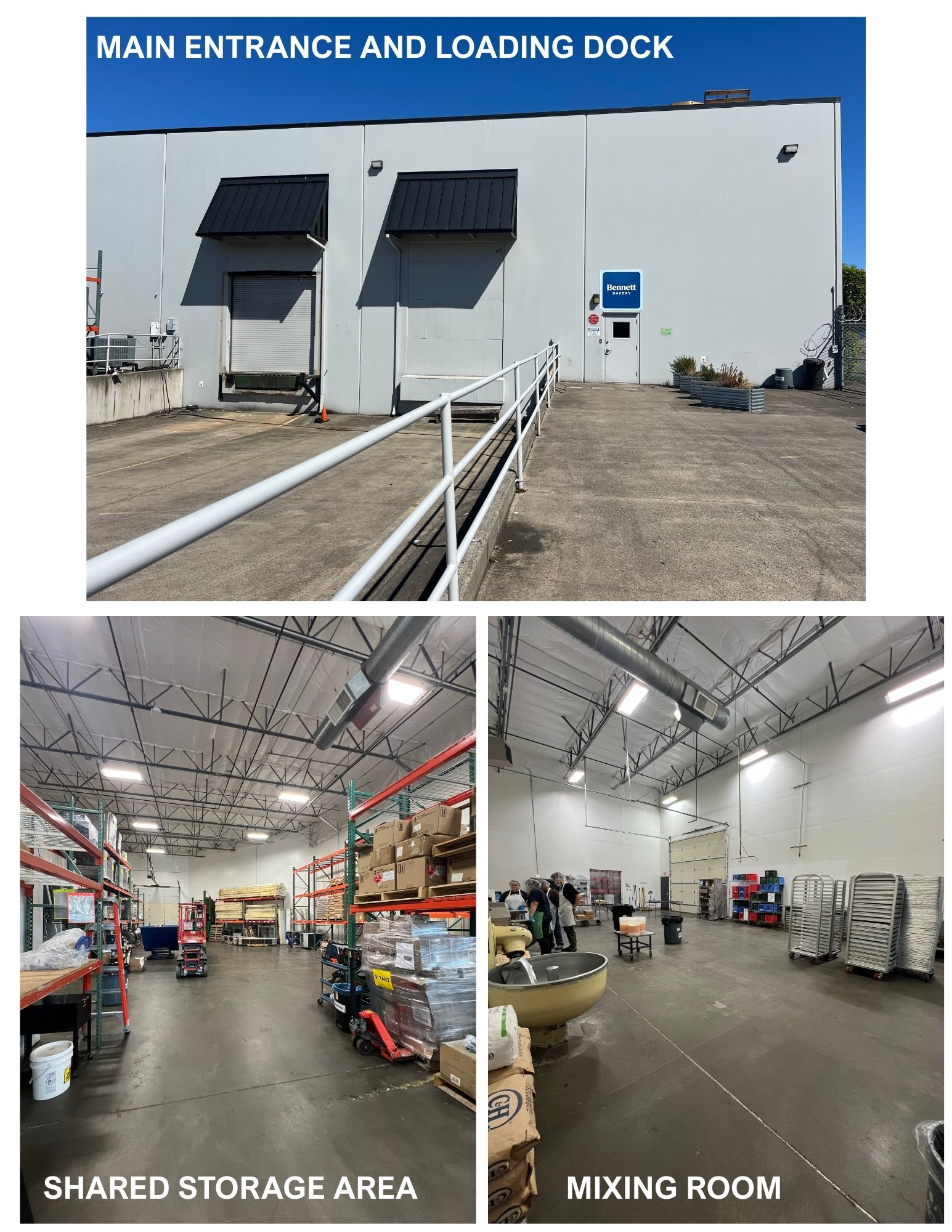 Shared loading dock, sanitation area, and employee break room