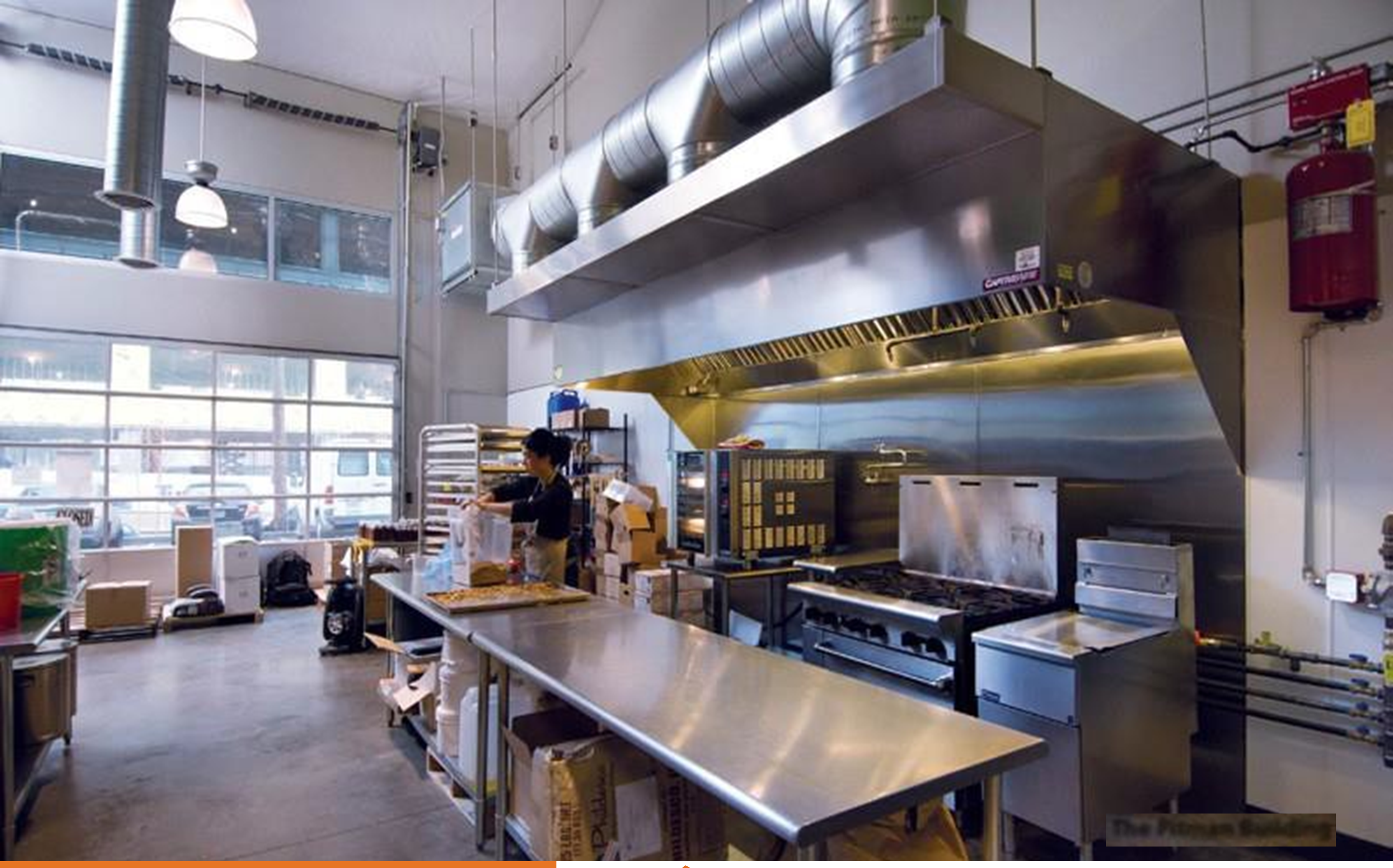 Ice machine. 2 convection oven, fryer, 6 burner stove, full dishwasher, plenty of prep table.....