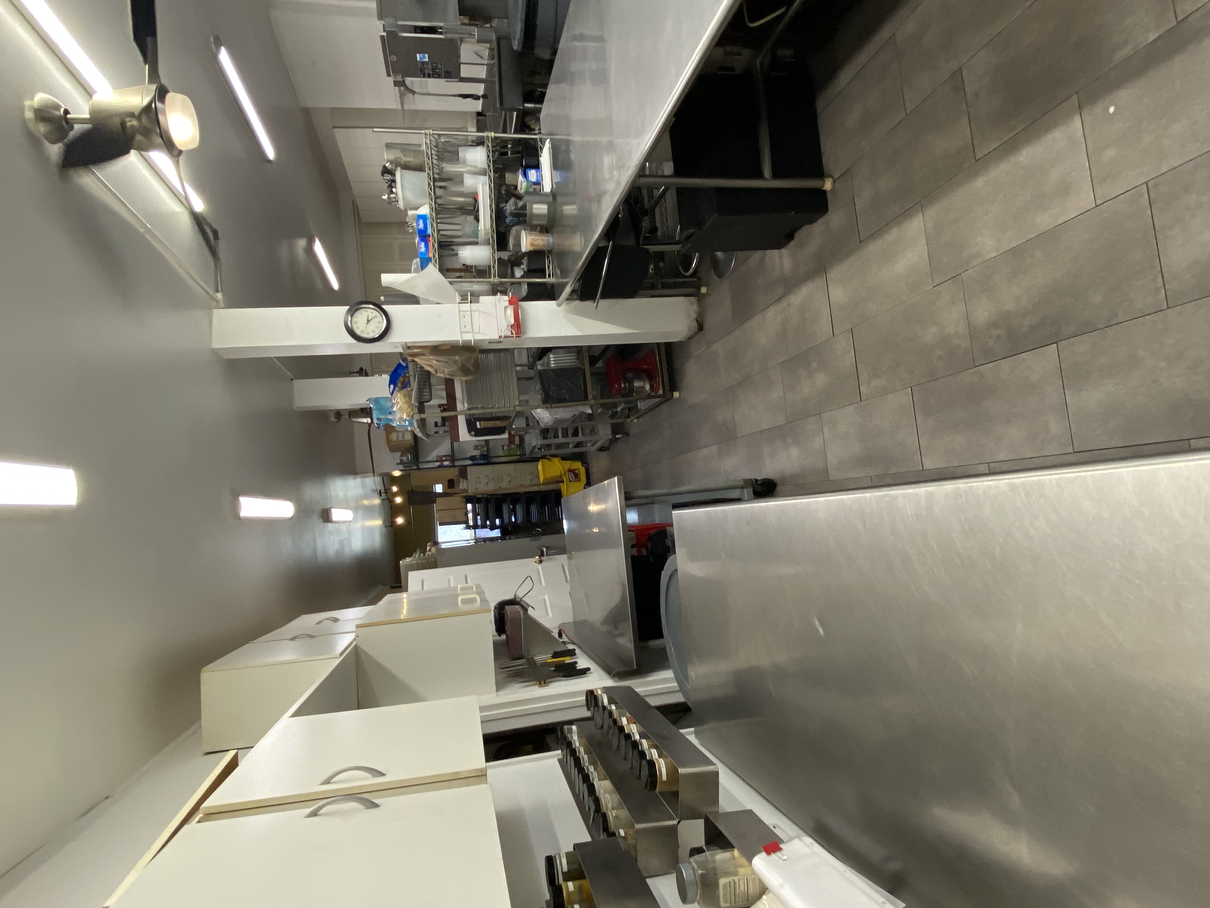 1200 square feet, 10 burner stove, double ovens, 30 qt fryer, dishwasher, 10 x 10 walk in, 1-10 x 4 prep table,